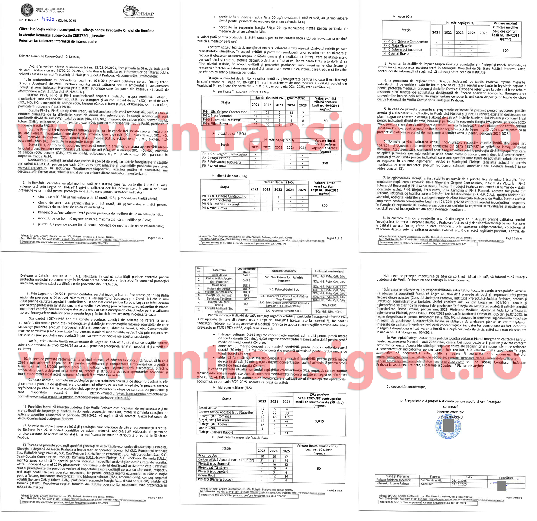 Pentru municipiul Ploiești există, conform răspunsului Agenției pentru Protecția Mediului, un Plan integrat de calitate a aerului valabil pentru perioada 2025–2030. Existența unui asemenea document reprezintă un pas important, pentru că legislația europeană și națională obligă autoritățile locale să elaboreze astfel de planuri atunci când sunt semnalate probleme legate de calitatea aerului.
