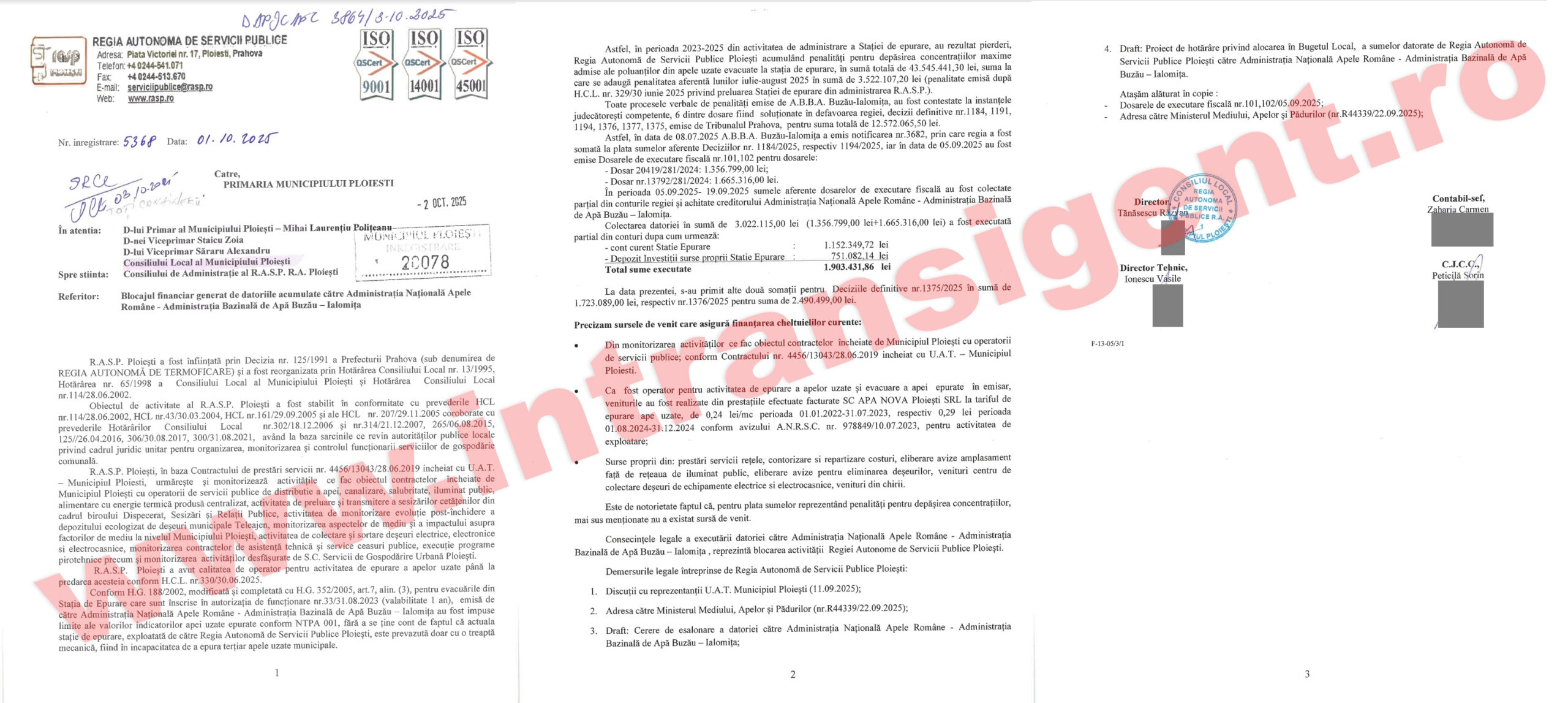 Dacă în primul document am văzut cum R.A.S.P. își recunoaște, cu jumătate de gură, falimentul moral și financiar, în al doilea act tabloul devine și mai grotesc. Primăria Ploiești, prin vocea primarului Mihai Polițeanu, se adresează direct ministrului Mediului, Diana-Anda Buzoianu, implorând o derogare pentru plata penalităților uriașe acumulate.