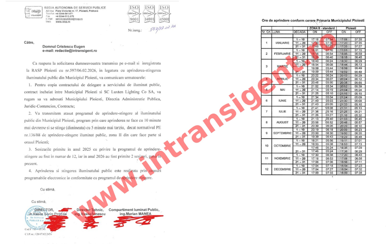 Redacția Intransigent a solicitat Regiei Autonome de Servicii Publice Ploiești (RASP) două lucruri firești:
