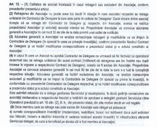Ia să citim puțin ce scrie în Art. 12 alin. (5) din Statutul ADI Deșeuri, care spune următoarele: