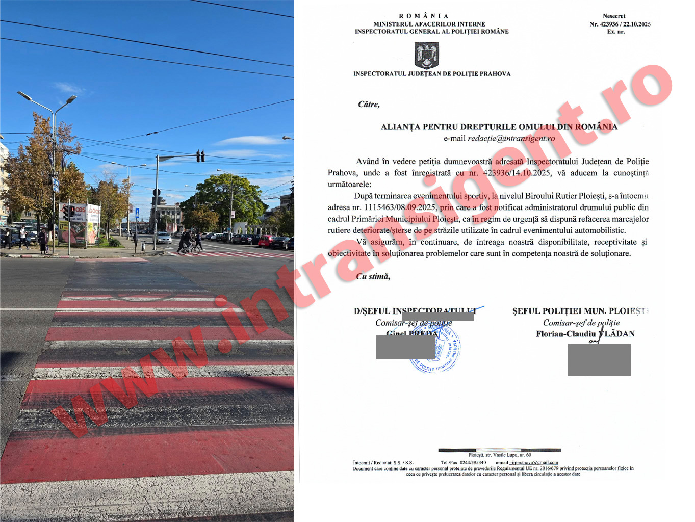 Dar să nu uităm că IPJ Prahova a avut reprezentanți chiar în comisia care a avizat concursul de drift ce a șters trei zebre în centrul Ploieștiului. Adică, întâi dai voie să se facă praf marcajele, apoi trimiți adrese solemne despre cum ar trebui refăcute „de urgență”. Așteptăm cu nerăbdare răspunsul la revenirea la răspunsul pe care îl vedeți în poză. Ar însemna că domnii comisar-șef Ginel Preda și Florian Vlădan ar incrimina pe cei care au fost de acord cu consecințele unei finale de drift …care ar fi fost corect să fie făcută în afara Ploieștiului, nu în centrul ei.