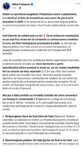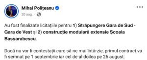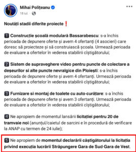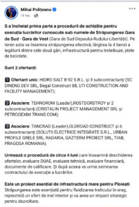 Mai adăugăm un element …comunicarea contradictorie erodează încrederea. A spune pe 6 august că licitația e „în curs” și pe 20 august că „licitațiile au fost finalizate” (cu data de semnare bătută în cuie) ridică întrebări legitime. Unde este anunțul oficial de atribuire? Unde este contractul? Unde este ordinul de începere? Transparența cere publicarea acestor pași — nu doar enunțarea lor pe rețele sociale.