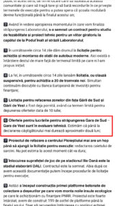 – Publicarea tuturor jaloanelor (raport de evaluare, comunicarea rezultatului, cine e câștigătorul licitației, data semnării, ordinul de începere dacă se poate finalzia până la 31 decembrie și în ce condiții, ce se întâmplă dacă nu poate fi finalizat proiectul).