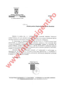 Confirmarea apare într-un răspuns oficial semnat de prefectul județului Prahova, Daniel Nicodim, transmis ADOR, ca urmare a petiției înregistrate sub nr. 11554/L518/2025, prin care organizația a solicitat tragerea la răspundere disciplinară a unui înalt funcționar public pentru fapte considerate grave și repetate, cu impact direct asupra legalității actului administrativ.