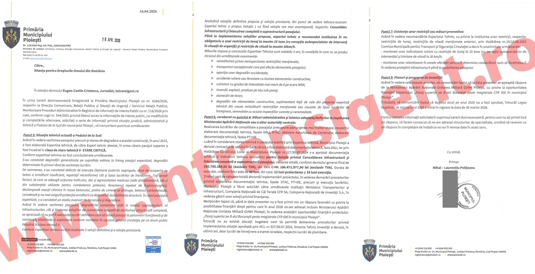 Iar întrebarea care rămâne este una pe cât de simplă, pe atât de incomodă: de ce a fost nevoie de o cerere formulată în baza Legii nr. 544/2001 pentru ca ploiestenii să afle oficial ceea ce Primăria știa de cel puțin doi ani? Aici nu mai vorbim doar despre starea unui pod, ci și despre felul în care administrația a ales să gestioneze un adevăr incomod.