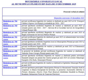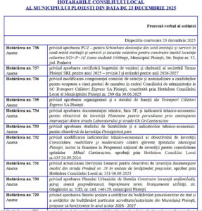 Dacă în cazul hotărârilor din 23 decembrie 2025 ne aflăm în fața unei transparențe defecte, dar măcar formal existente, situația devine cu adevărat gravă atunci când analizăm ședința Consiliului Local din 29 decembrie 2025. Este vorba despre ședința în care au fost stabilite taxele și impozitele locale pentru anul 2026, decizii cu impact direct și imediat asupra fiecărui contribuabil din Ploiești.